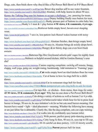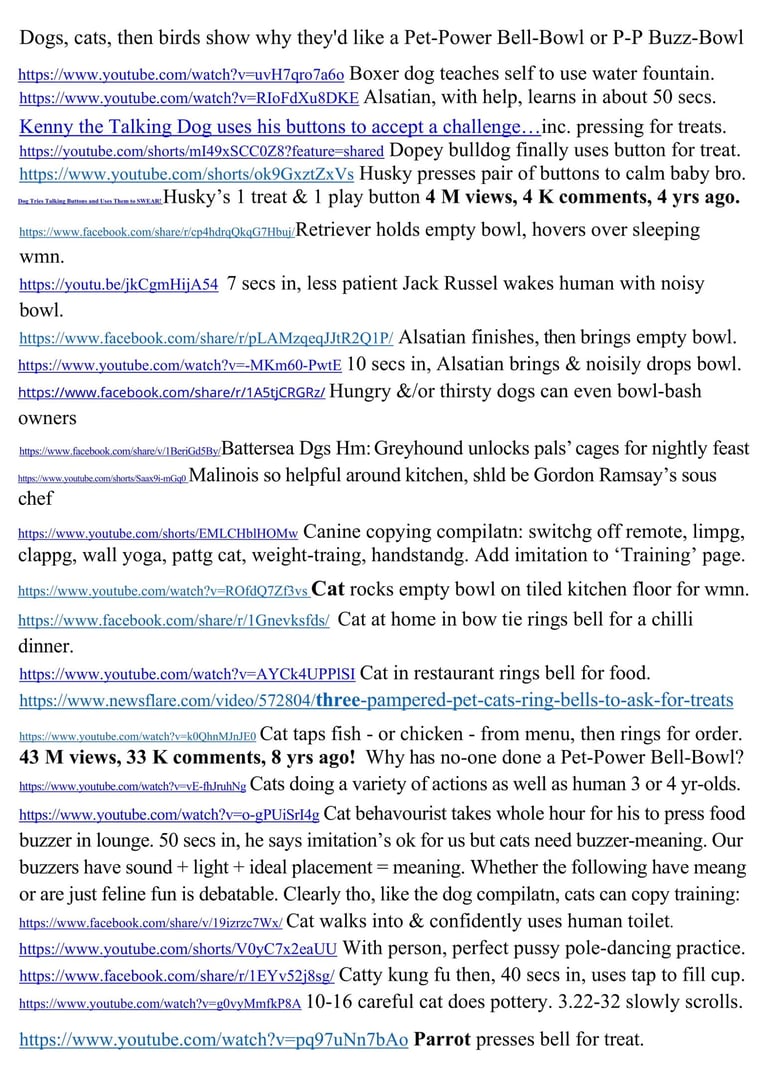 There are viral videos of pets nudging, kicking – even carrying – empty bowls to their humans, & of pets pressing buttons or bells for treats A one-min explainer-video by a top team will include the Pet-Power Buzz-Bowl's use, & overuse (being cheeky), of buttons for Amazon & Alibaba.