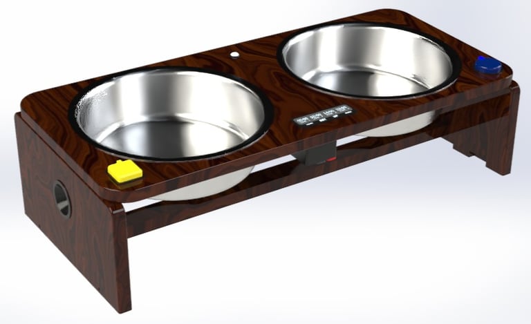 Pet-Power BELL-Bowl pics available. Anyone now with me - once Buzz-Bowl's successful - will work on Bell-Bowl... a purely mechanical, similarly-patented, double-bowl, with a pet-friendly, similarly colour-coded, blue, unique lever-bell for water, & yellow lever-gong for food.